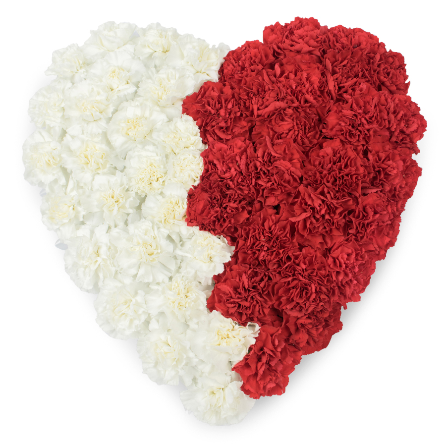 Express your deepest sentiments with our romantic heart-shaped mixed carnations bouquet, featuring exquisite white and vibrant red carnations. Each flower is hand-selected for its exceptional freshness and stunning color, ensuring a unique and beautiful arrangement.